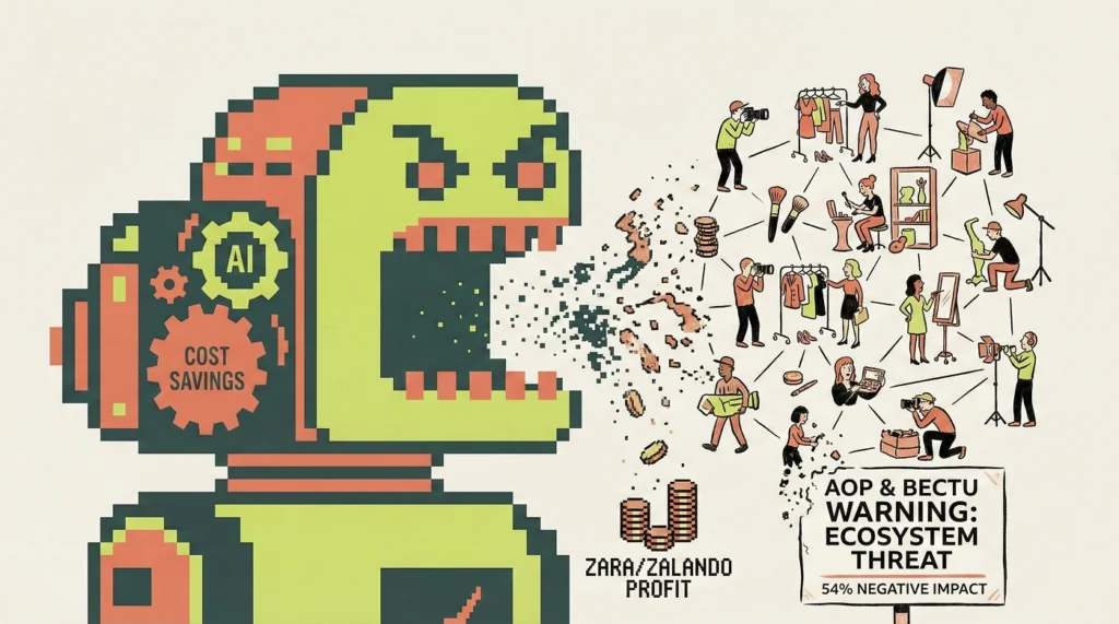 İngiltere’deki Fotoğrafçılar Birliği (Association of Photographers – AOP) CEO’su Isabelle Doran, yapay zekanın yaygınlaşmasının, sadece fotoğrafçıları değil, tüm bir ekosistemi (stilistler, makyözler, set tasarımcıları, ışıkçılar, kiralama şirketleri) tehdit ettiğini belirtmektedir. Zara ve Zalando’nun maliyet tasarrufu olarak hanesine yazdığı her dolar, aslında bu ekosistemdeki çalışanların gelir kaybı olarak nitelenmektedir. Sendika Bectu’nun araştırmasına göre, moda endüstrisindeki çalışanların %54’ü yapay zekanın sektör üzerindeki etkisinin olumsuz olacağına inanmaktadır.