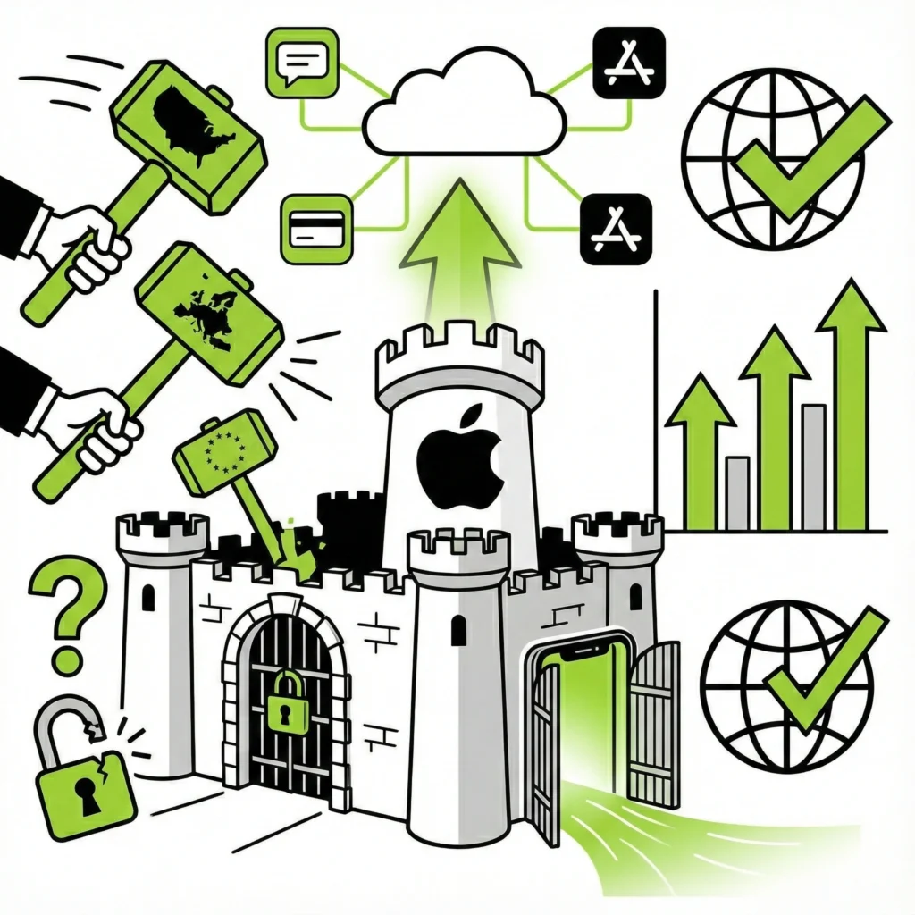 Stratejik Tehdit: Apple’ın “bekçi” konumu hem değerini yaratan hem de en büyük riski oluşturan faktör. ABD ve AB’deki anti-tröst düzenlemeler, App Store’un %30’luk komisyonunu tehdit ediyor.