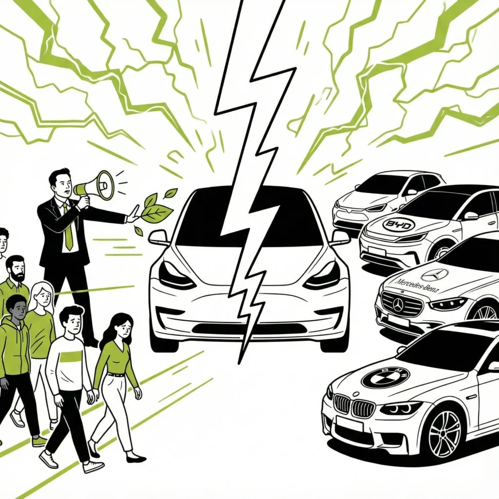 Sebep: CEO’nun kutuplaştırıcı tavrı ana müşteri kitlesini (liberal, çevreci alıcılar) yabancılaştırdı. Elektrikli Araç (EV) pazarı artık Tesla vs. benzinli değil, Tesla vs. BYD, Mercedes, BMW.